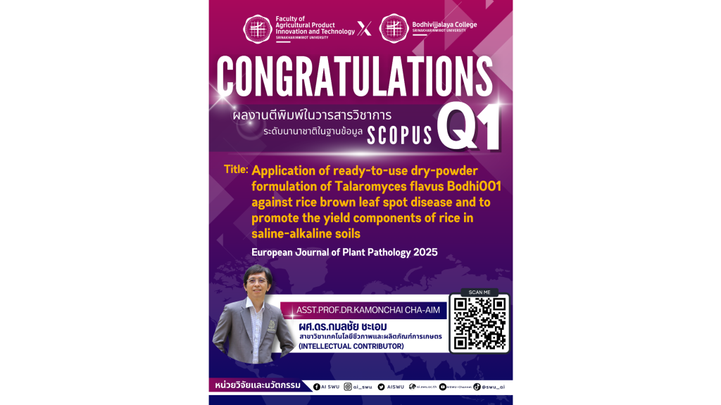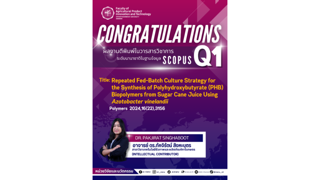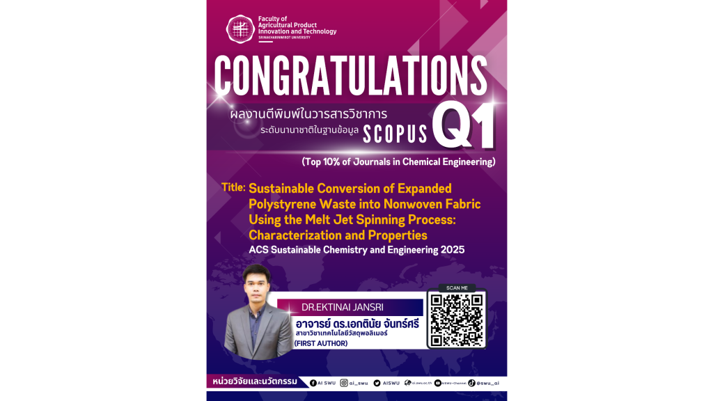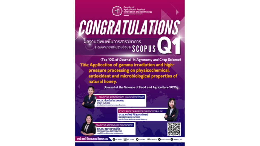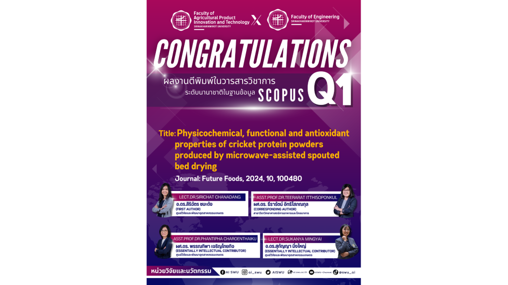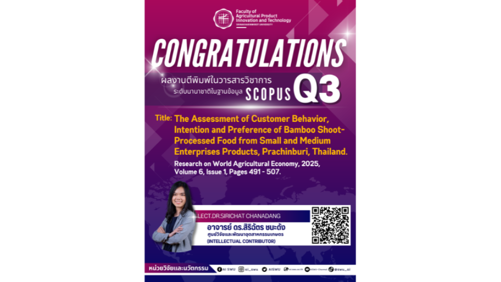 ขอแสดงความยินดีกับอาจารย์คณะเทคโนโลยีและนวัตกรรมผลิตภัณฑ์การเกษตร ที่ได้รับการตีพิมพ์บทความวิจัยในวารสารวิชาการระดับนานาชาติในฐานข้อมูล Scopus