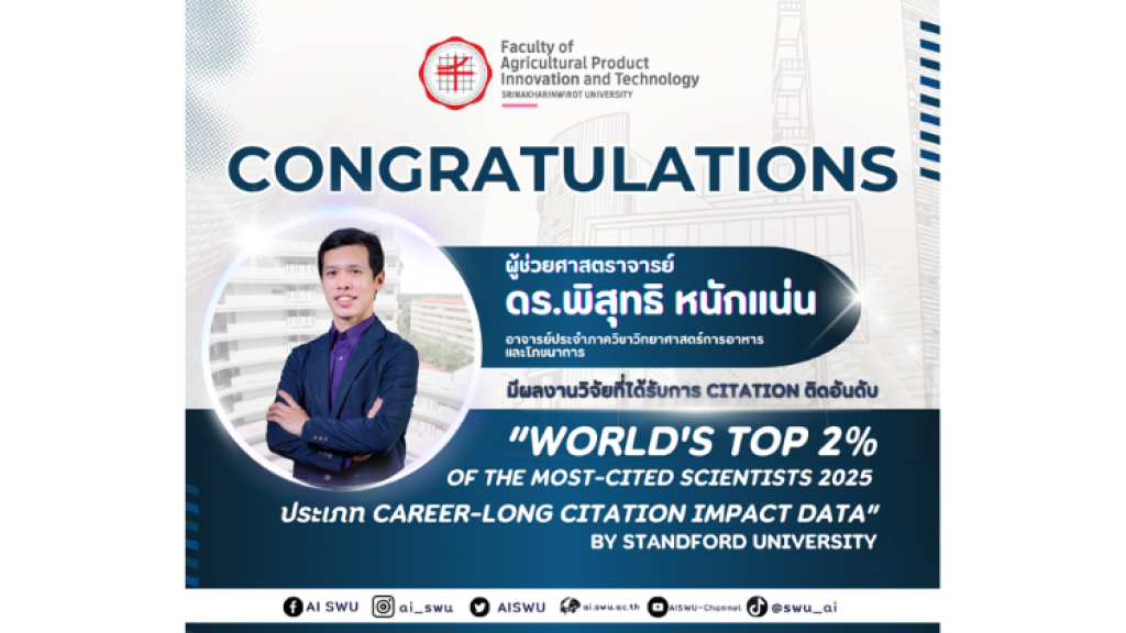 ขอแสดงความยินดี ผู้ช่วยศาสตราจารย์ ดร.พิสุทธิ หนักแน่น อาจารย์ประจำภาควิชาวิทยาศาสตร์การอาหารและโภชนาการ