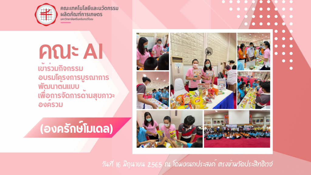 ข่าว 2022-06-16 คณะ AI เข้าร่วมกิจกรรมอบรมโครงการบูรณาการ พัฒนาต้นแบบเพื่อการจัดการด้านสุขภาวะองค์รวม (องครักษ์โมเดล) วันที่ 16 มิถุนายน 2565 ณ โดมอเนกประสงค์ ตรงข้ามวัดประสิทธิเวช