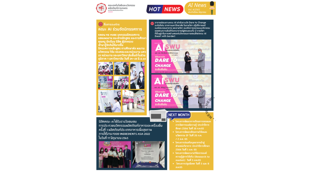 ติดตามข้อมูลข่าวสาร ประจำเดือน ทุกๆเดือนได้ที่ ai.swu.ac.th