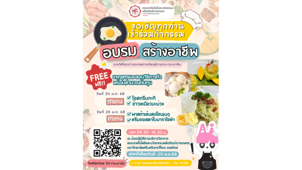 ขอเชิญทุกท่านเข้าร่วมกิจกรรม "อบรมสร้างอาชีพ"