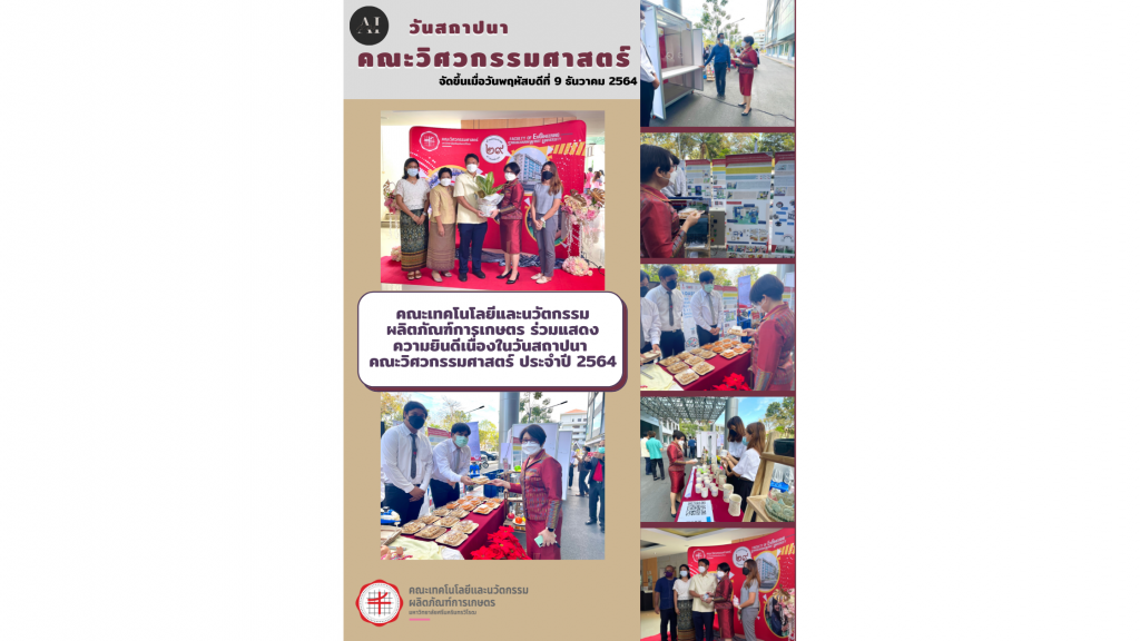 ข่าวประชาสัมพันธ์ คณะเทคโนโลยีและนวัตกรรมผลิตภัณฑ์การเกษตร ร่วมแสดง ความยินดีเนื่องในวันสถาปนา คณะวิศวกรรมศาสตร์ ประจำปี 2564