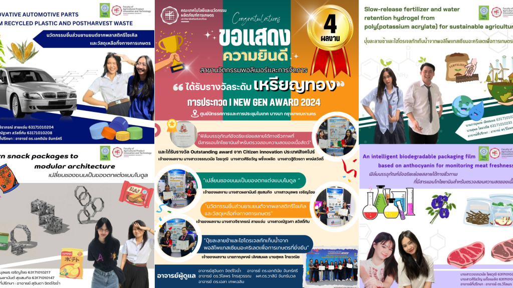 ได้แก่ผลงาน 1.ฟิล์มบรรจุภัณฑ์อัจฉริยะย่อยสลายได้ทางชีวภาพที่มีสารแอนโทไซยานินสำหรับตรวจสอบ