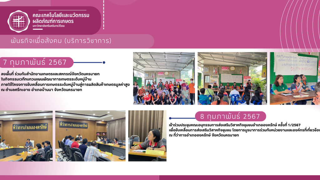 ผู้ช่วยคณบดีฝ่ายพันธกิจเพื่อสังคมตัวแทนคณบดี เข้าร่วมประชุมคณะอนุกรรมการส่งเสริมวิสาหกิจชุมชนอำเภอองครักษ์ ครั้งที่ 1/2567